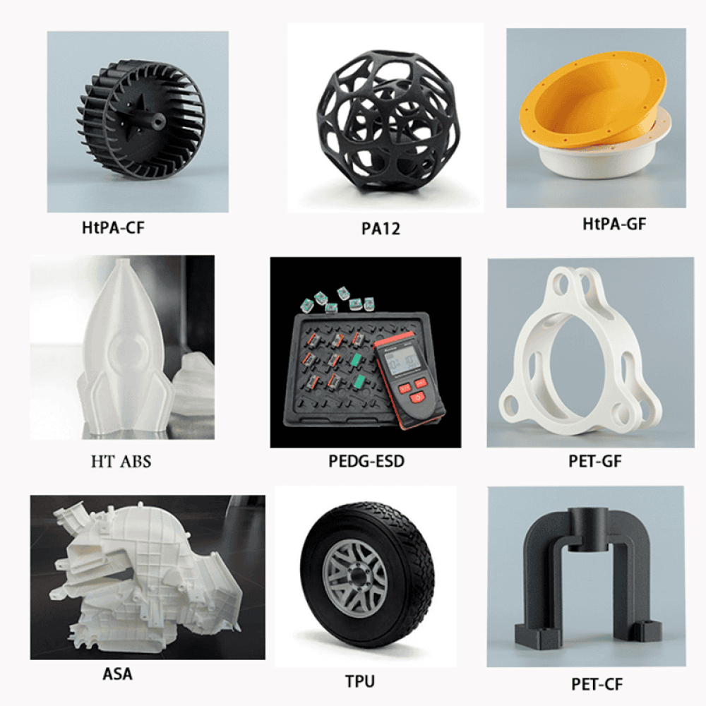 | Баспа материалы | ABS, PLA, PETG, ASA, TPU, PETG-CF, PET-CF/GF, HtPA-CF/GF, PA12-CF, HtPA-GF25/CF25 |