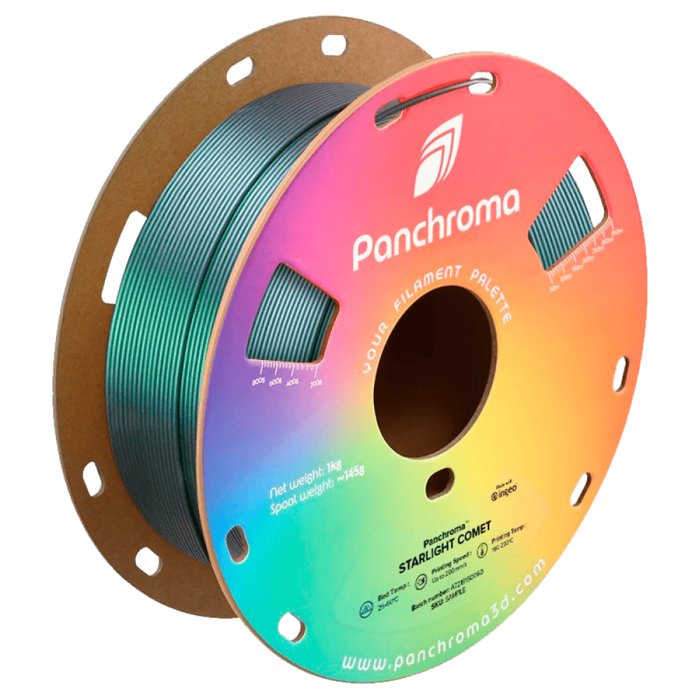 Starlight Comet - бұл модель бетінде жұлдызды жарқырау жасайтын бірегей жарқыраған әсері бар премиум PLA. Материалдың түсі жарықтандыруға байланысты өзгеріп, әрбір басып шығаруға жанды және динамикалық көрініс береді.