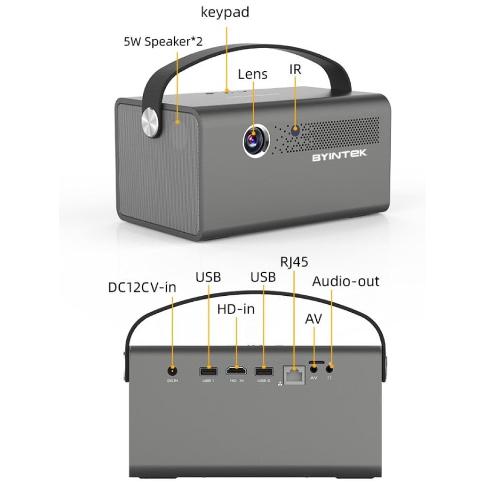 BYINTEK R17 Pro проекторы жоғары оптикалық ажыратымдылыққа және 750 ANSI люмен жарықтығына ие, соның арқасында жарықтандырылған бөлмеде де кескін бай және жарқын болады. Бұл модель үшін проекциялық экранның өлшемі 30-дан 300 дюймге дейін өзгереді. Кірістірілген Android 9.0 жүйесі мазмұнды тарату үшін әртүрлі қолданбаларды орнатуға мүмкіндік береді. Енді сіз Airplay және Miracast протоколдарына арналған проекторды қолдау арқылы ұялы телефон экранынан оңай жобалай аласыз. BYINTEK R17 Pro проекторының ықшам өлшемі бар және кірістірілген аккумулятордың арқасында сіз әрқашан презентациялар мен бос уақытты өткізу үшін проекторды өзіңізбен бірге ала аласыз.