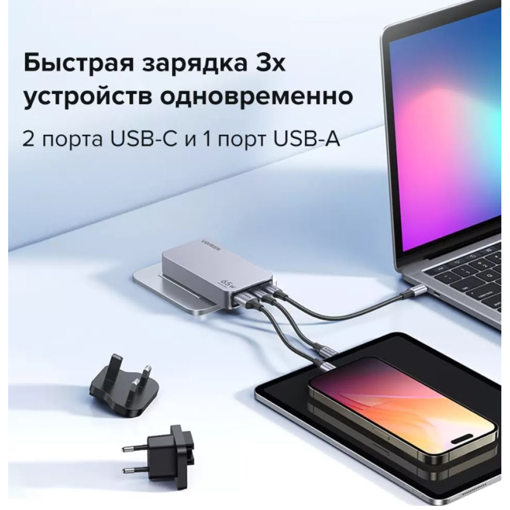 Универсальность — подходит для зарядки смартфонов, планшетов, ноутбуков, наушников и других устройств.