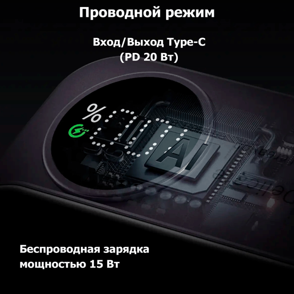 ✅ Быстрая зарядка → до 15 Вт по беспроводной зарядке и до 20 Вт по Type‑C, подходит для смартфонов, наушников и других гаджетов.
