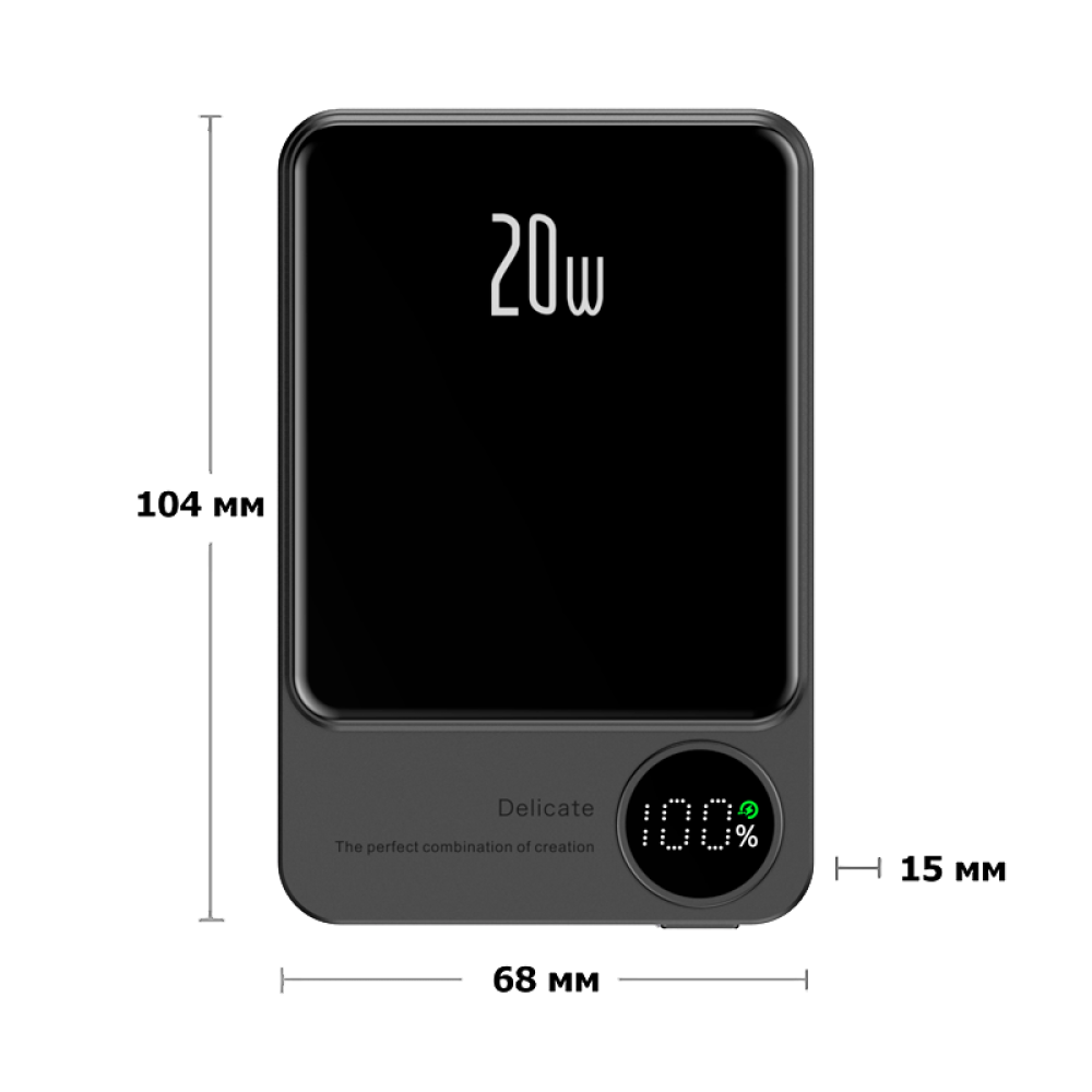 Особенности | Поддержка быстрой зарядки, поддержка беспроводной зарядки, защита от короткого замыкания, от перегрева, перезаряда. Светодиодный индикатор. Магнитная зарядка работает только с iPhone. |