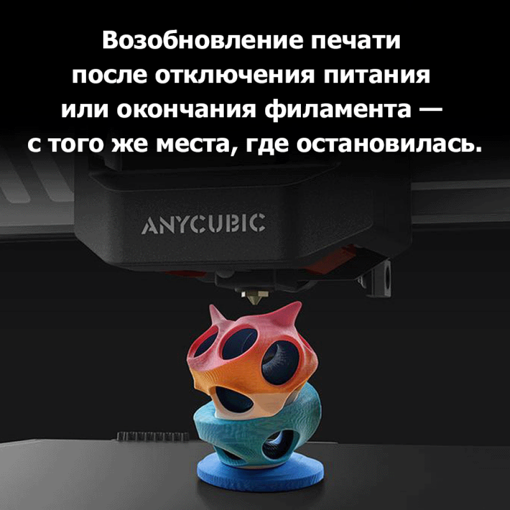 Принтер считывает параметры материала с RFID-меток, автоматически подбирая настройки — меньше ошибок, лучше результат. Полноценная работа функции доступна при использовании оригинальных филаментов Anycubic.