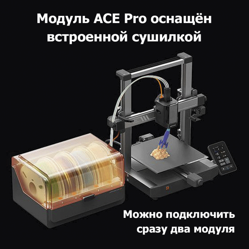 Многоцветные модели без ручной смены катушек — благодаря интеллектуальной системе ACE Pro (Anycubic Color Engine Pro).