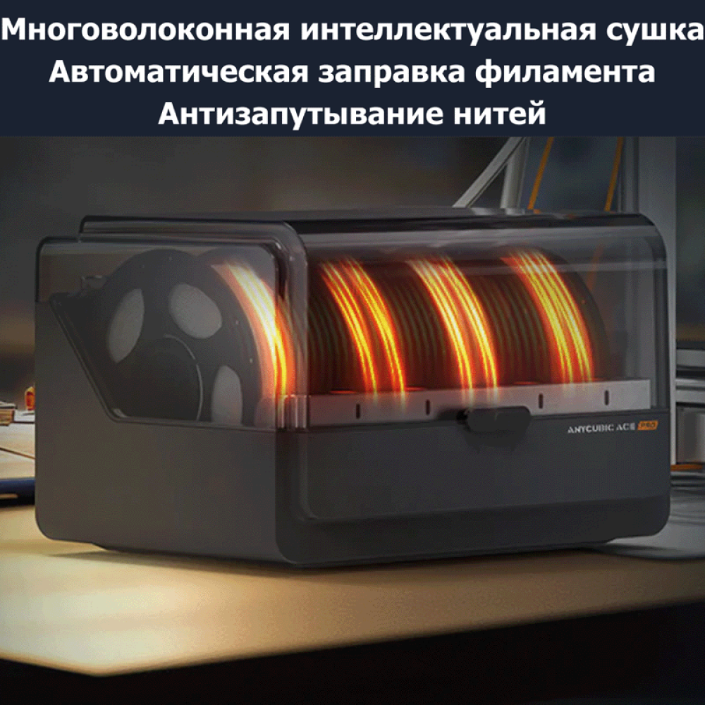 → Специальная коробка для филамента с функцией сушки поддерживает стабильную подачу материала – меньше деформаций, меньше брака.