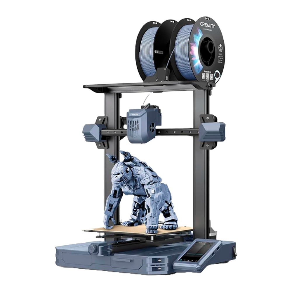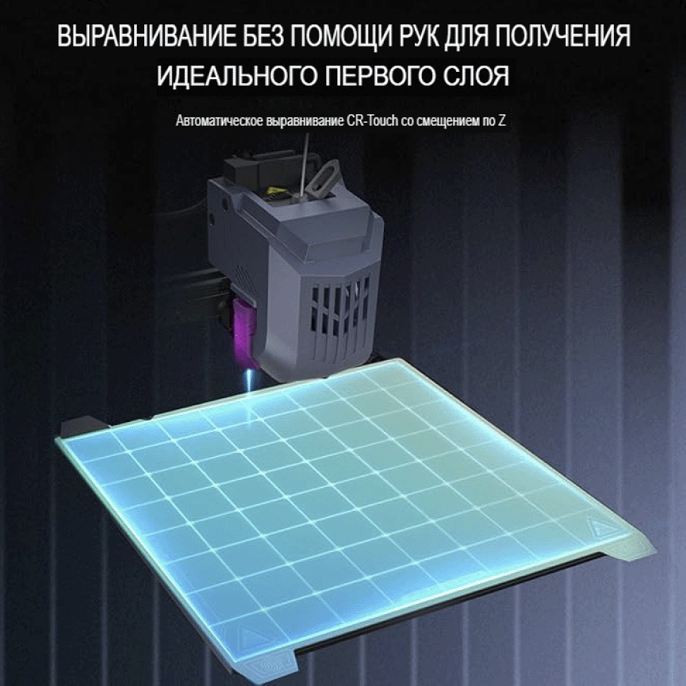 Принтер оснащён сенсорным экраном CR-Touch для автоматического выравнивания и тензодатчиком для корректировки оси Z. Эффективный вентилятор охлаждает детали, обеспечивая равномерное высушивание моделей. ОС Creality с двухъядерным процессором и 8 ГБ ПЗУ поддерживает синхронизацию с компьютером, смартфоном и облаком в реальном времени. Принтер совместим с PLA, PETG, ABS, TPU, а также с высокопрочными и термостойкими материалами, такими как PA и PLA-CF.