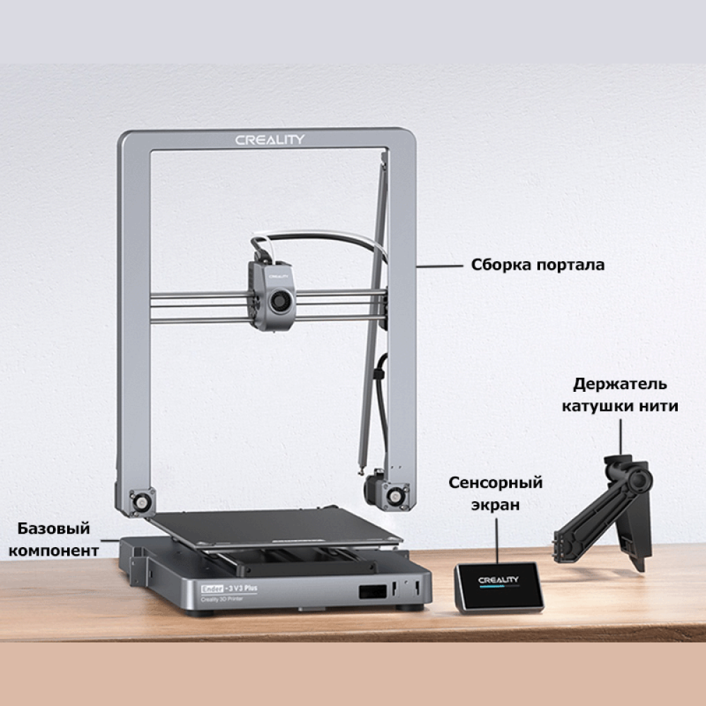 Портал и основание Ender 3 V3 Plus представляют собой цельную деталь из алюминиевого сплава, изготовленную методом интегрированного литья под давлением. Благодаря меньшему количеству болтов и швов принтер невероятно прочен и стабилен.