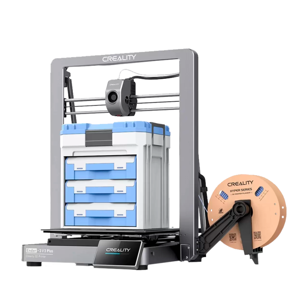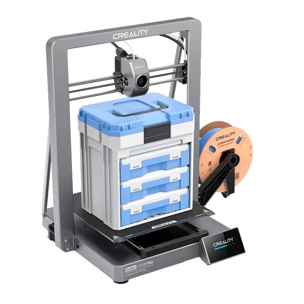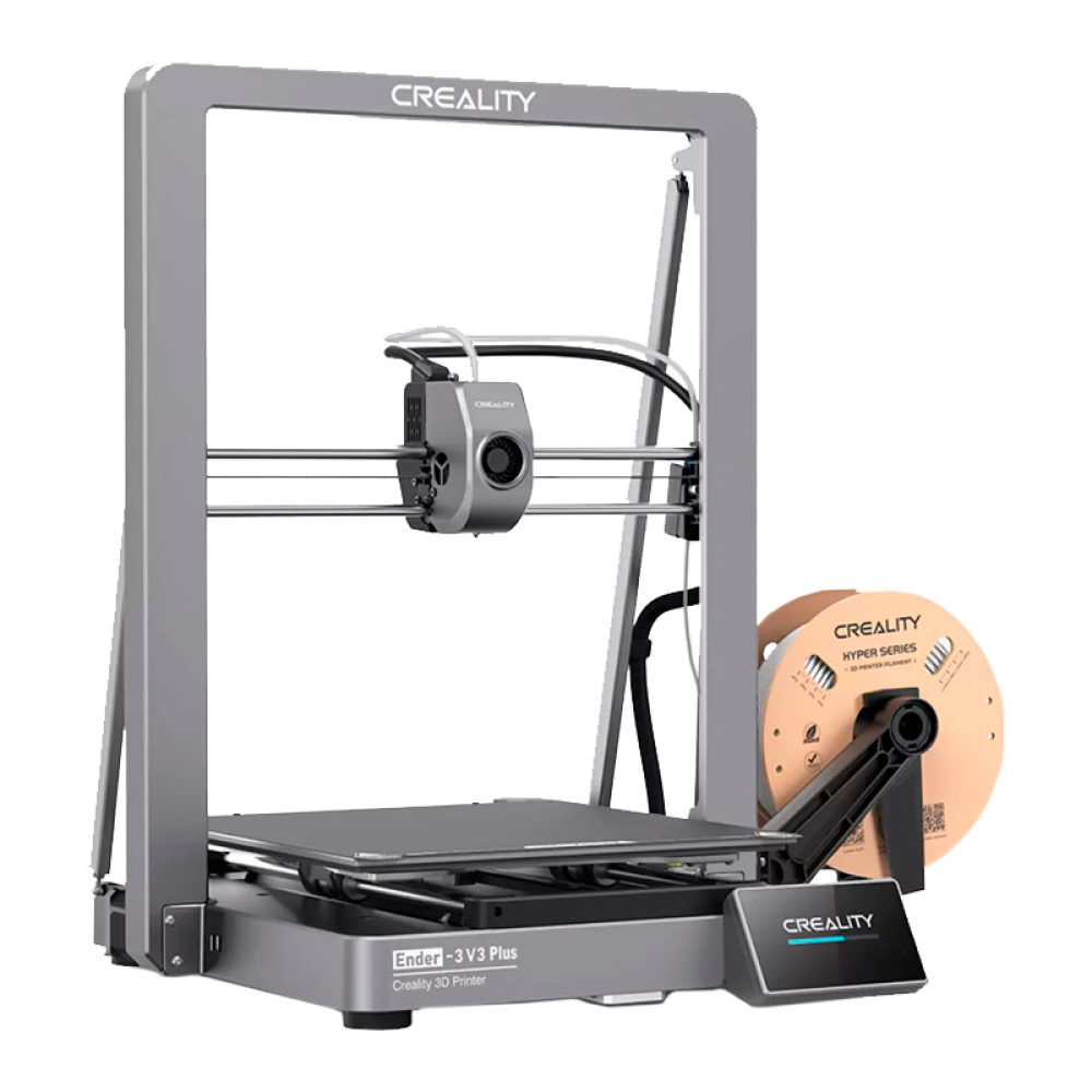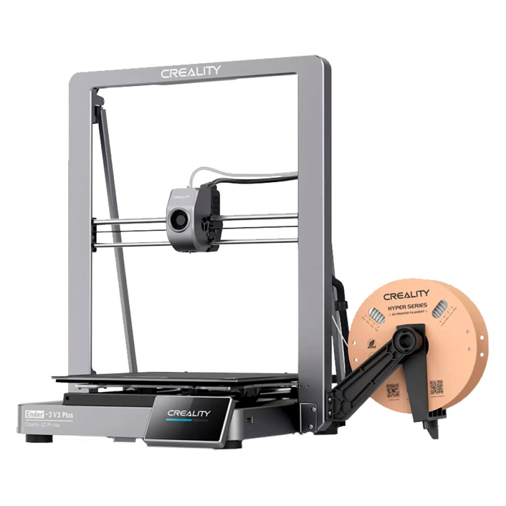 Ender 3 V3 Plus от Creality предлагает достаточно места даже для самых смелых идей благодаря своему огромному объему печати 300 x 300 x 330 мм, но он занимает значительно меньше места, чем 3D-принтеры аналогичного объема печати.