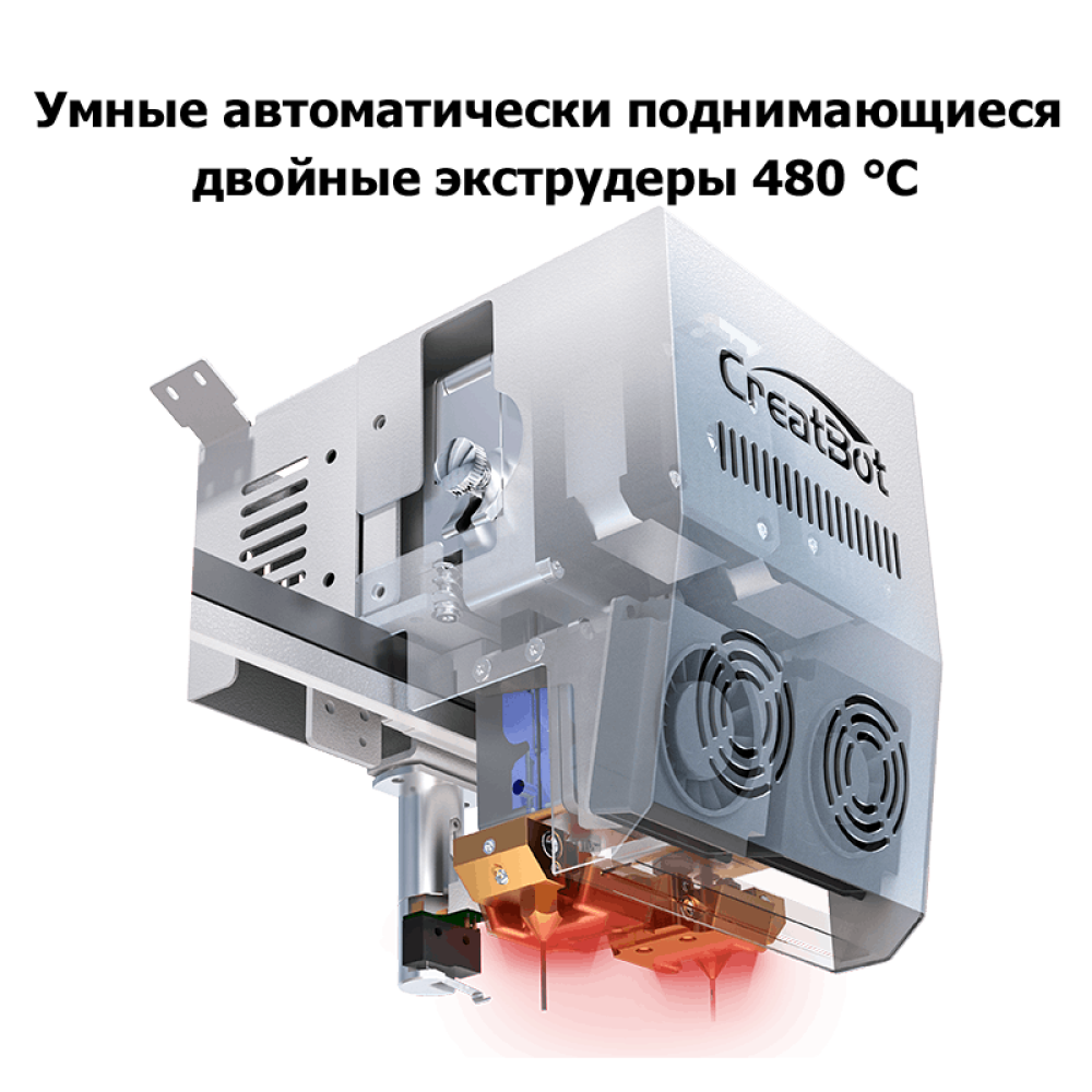 - Технология Auto-rising dual extruders — интеллектуальные двойные экструдеры с функцией автоматического подъема