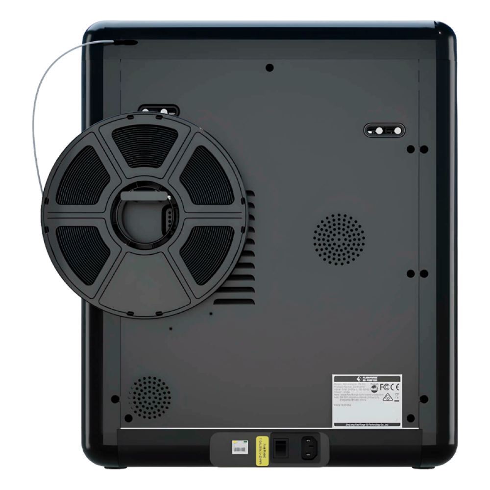Принтер оснащен автоматическим выравниванием, системой фильтрации с угольными и HEPA13 фильтрами для защиты от вредных веществ, а также циркуляционными фильтрами для различных материалов. Уровень шума — 50/55 дБ. Управление осуществляется через цветной сенсорный дисплей 4,3 дюйма.
