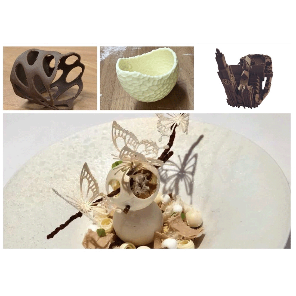 Материал для печатишоколад, мягкие сыры, джемы, марципан, картофельное пюре | Ширина, высота, глубина рабочего пространства150x100x80 мм | Формат файлов 3D-моделиSTL, Gcode, OBJ |