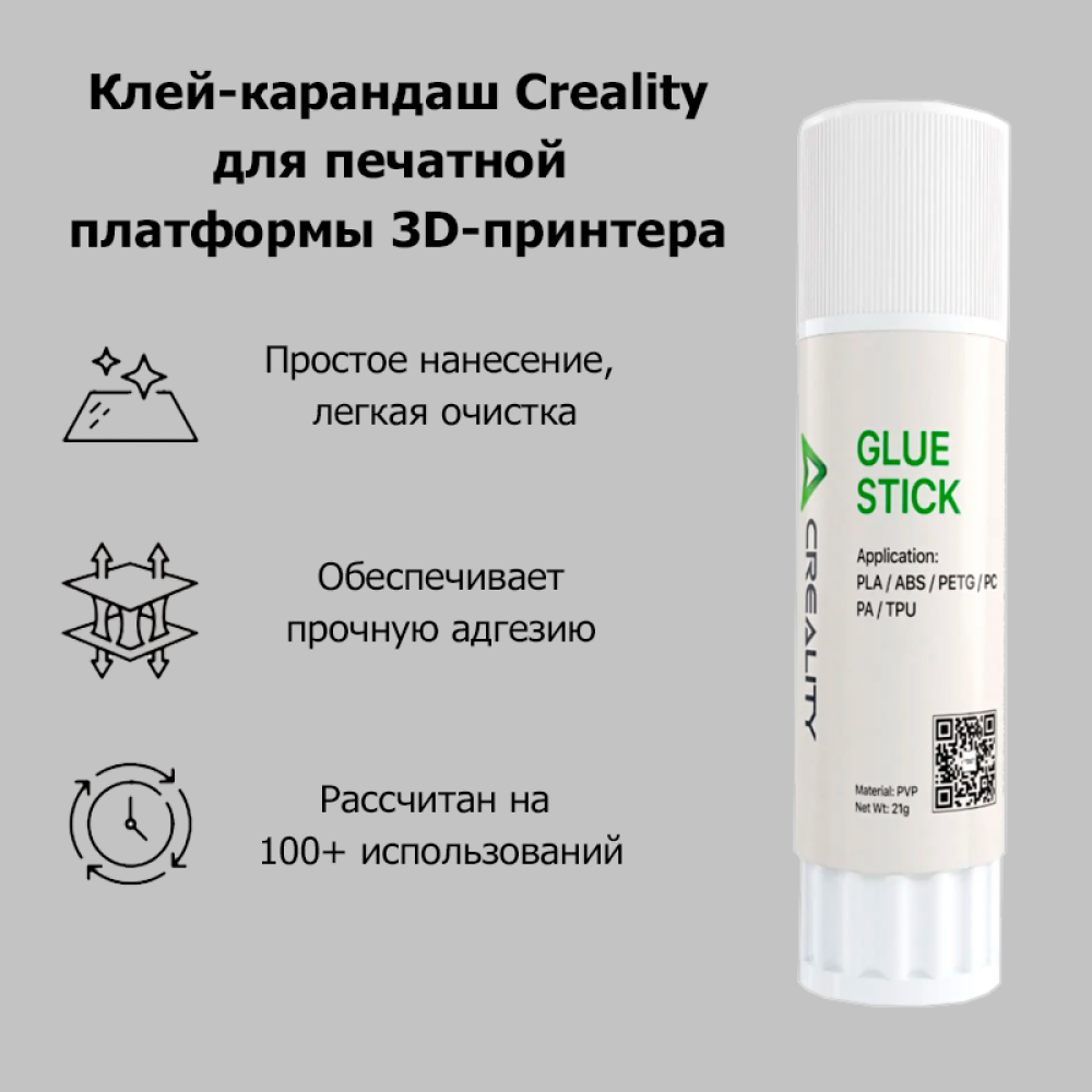 Клей-стик Creality — это незаменимый инструмент, который обеспечивает надежную фиксацию печатных моделей на платформе вашего 3D принтера. Использование PVP клея особенно эффективно при печати с PLA и другими пластиковыми материалами, которые требуют средней степени адгезии.