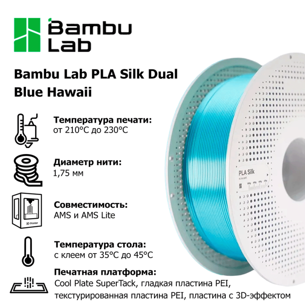 Bambu PLA Silk Dual – это лёгкий способ добавить вашим 3D-печатным проектам премиальный вид и вау-эффект. Вы получаете прочные, красивые и яркие модели без лишних настроек и сложностей.