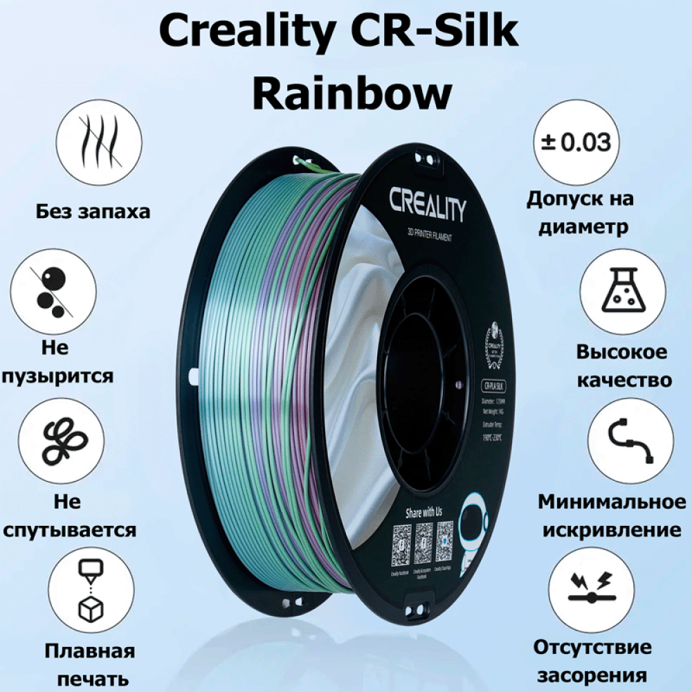 Creality CR-Silk Rainbow – идеальный выбор, если вы хотите, чтобы ваши 3D-проекты восхищали с первого взгляда. Печатайте легко, красиво и без компромиссов!