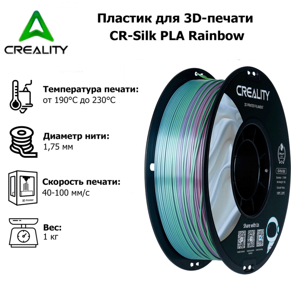 Филамент Creality CR-Silk Rainbow – для тех, кто печатает не просто модели, а произведения искусства.