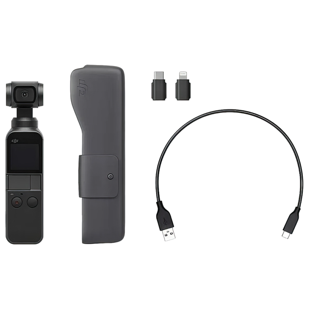 Комплектация | Камера DJI Osmo Pocket / футляр / адаптер Lightning / адаптер USB-C / адаптер microUSB / USB-кабель / документация |