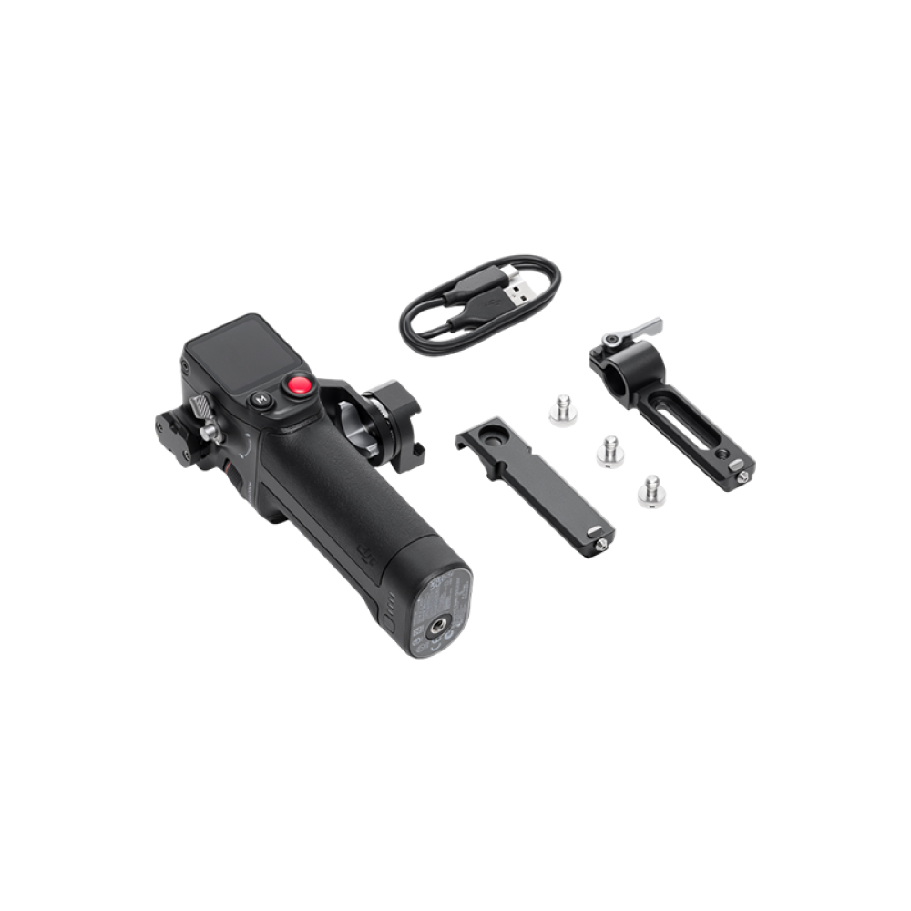 Рукоятка оснащена магнитным демпфирующим диском и полноцветным сенсорным экраном диагональю 1,8 дюйма. В сочетании с DJI Focus Pro LiDAR ручка может включать автофокусировку для ручных объективов.