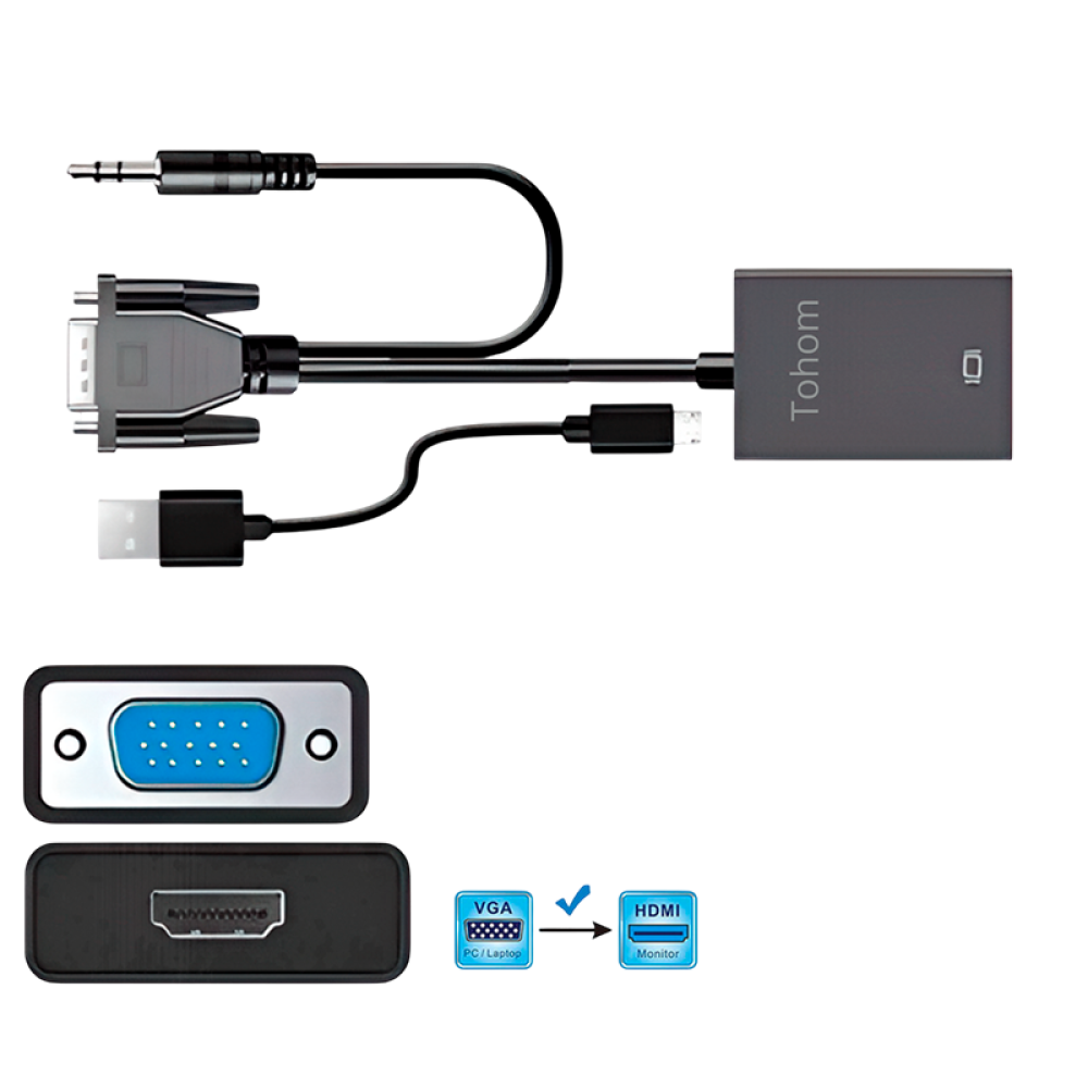 Если у вас есть ноутбук или ПК со старым VGA-выходом, а монитор или телевизор — только с HDMI, адаптер Tohom VGA-HDTV станет идеальным решением. Он позволяет легко подключить старую технику к новым экранам, не покупая дорогие дополнительные устройства.