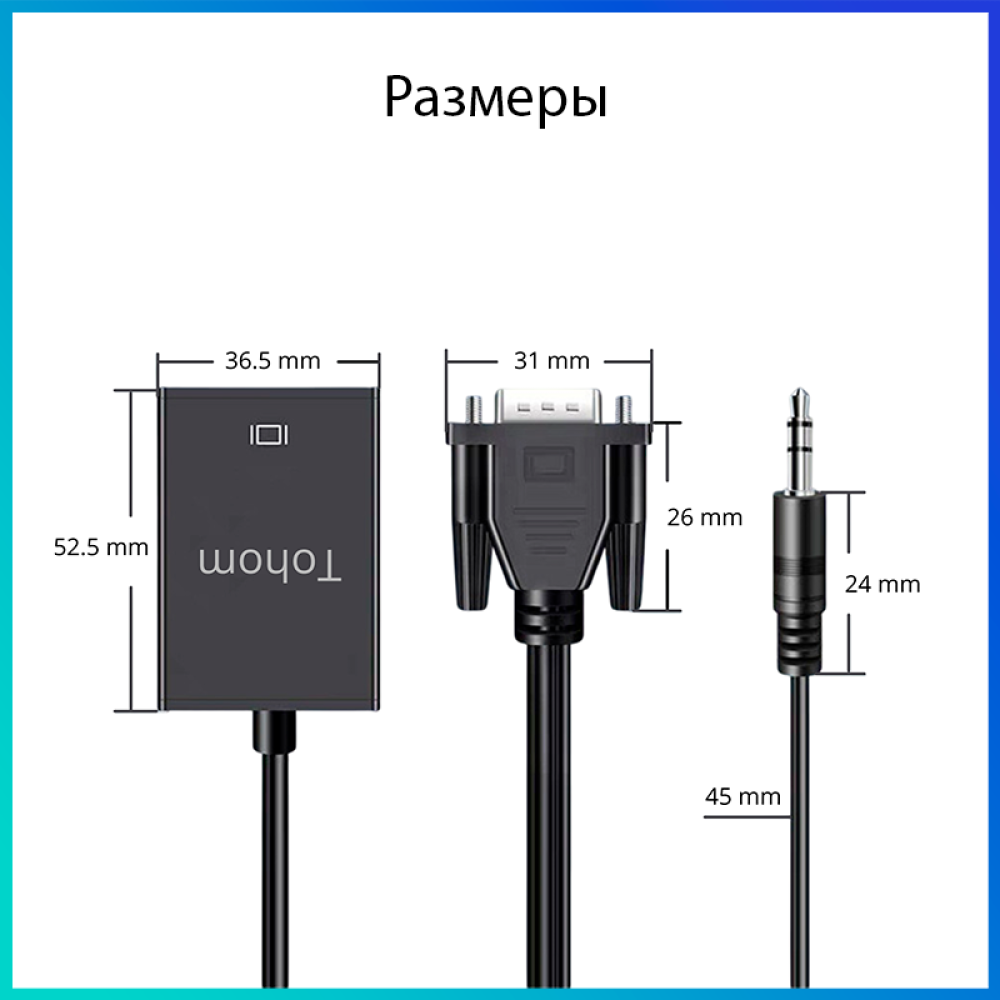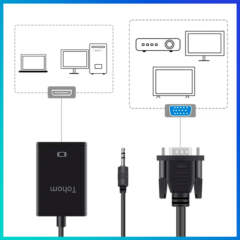 В отличие от обычных VGA-кабелей, адаптер Tohom передает не только изображение, но и звук благодаря встроенному 3.5 мм аудиокабелю. Полноценный мультимедийный опыт — одним подключением!