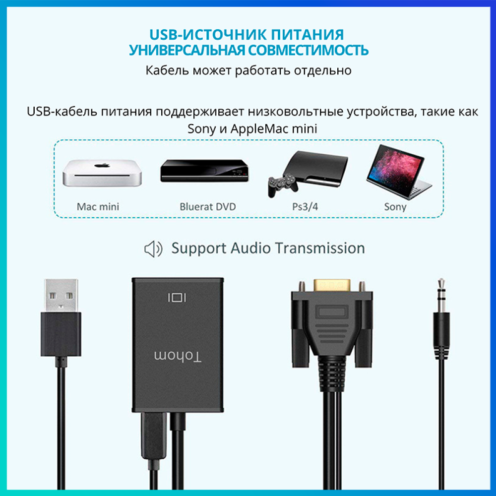 Tohom VGA-HDTV — умное решение, которое продлевает жизнь вашей технике и открывает доступ к современным возможностям. Подключайте, обновляйте, наслаждайтесь