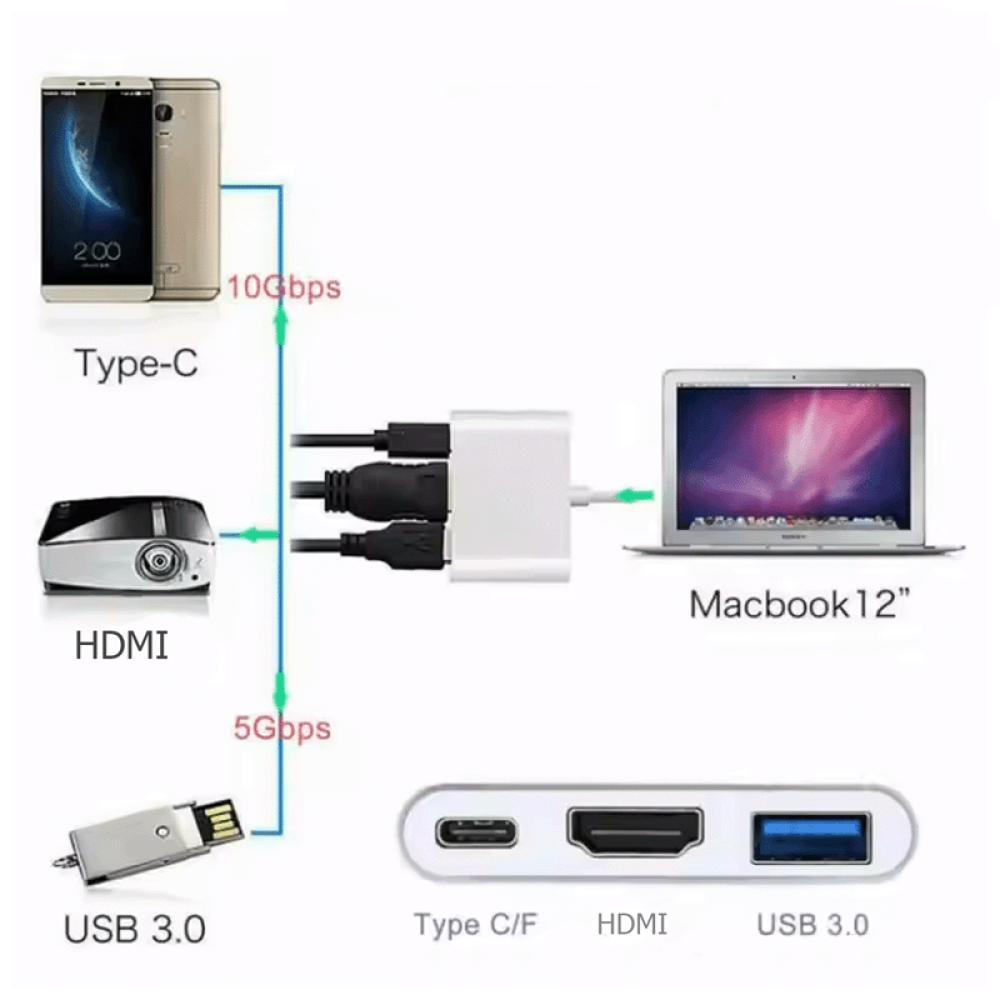 Вес49 г | СовместимостьMacOS, Windows, Android | ИнтерфейсыUSB Type-C, USB 3.0 Type-A, HDMI |