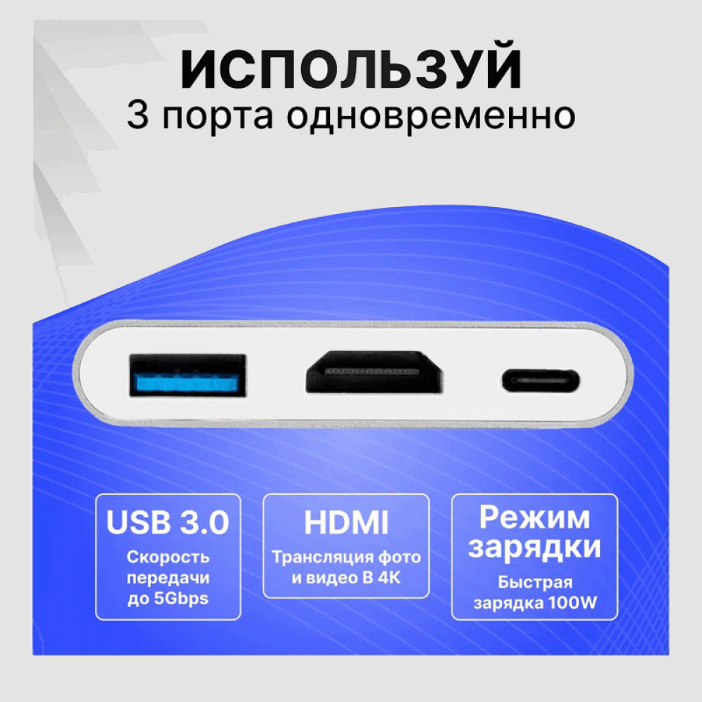 Благодаря поддержке разрешения 4K, вы можете подключать монитор или телевизор и наслаждаться чётким изображением при просмотре видео, играх или работе. Лёгкий и компактный USB-хаб Tohom 3 в 1 удобно брать с собой — он подойдёт как для дома, так и для поездок.