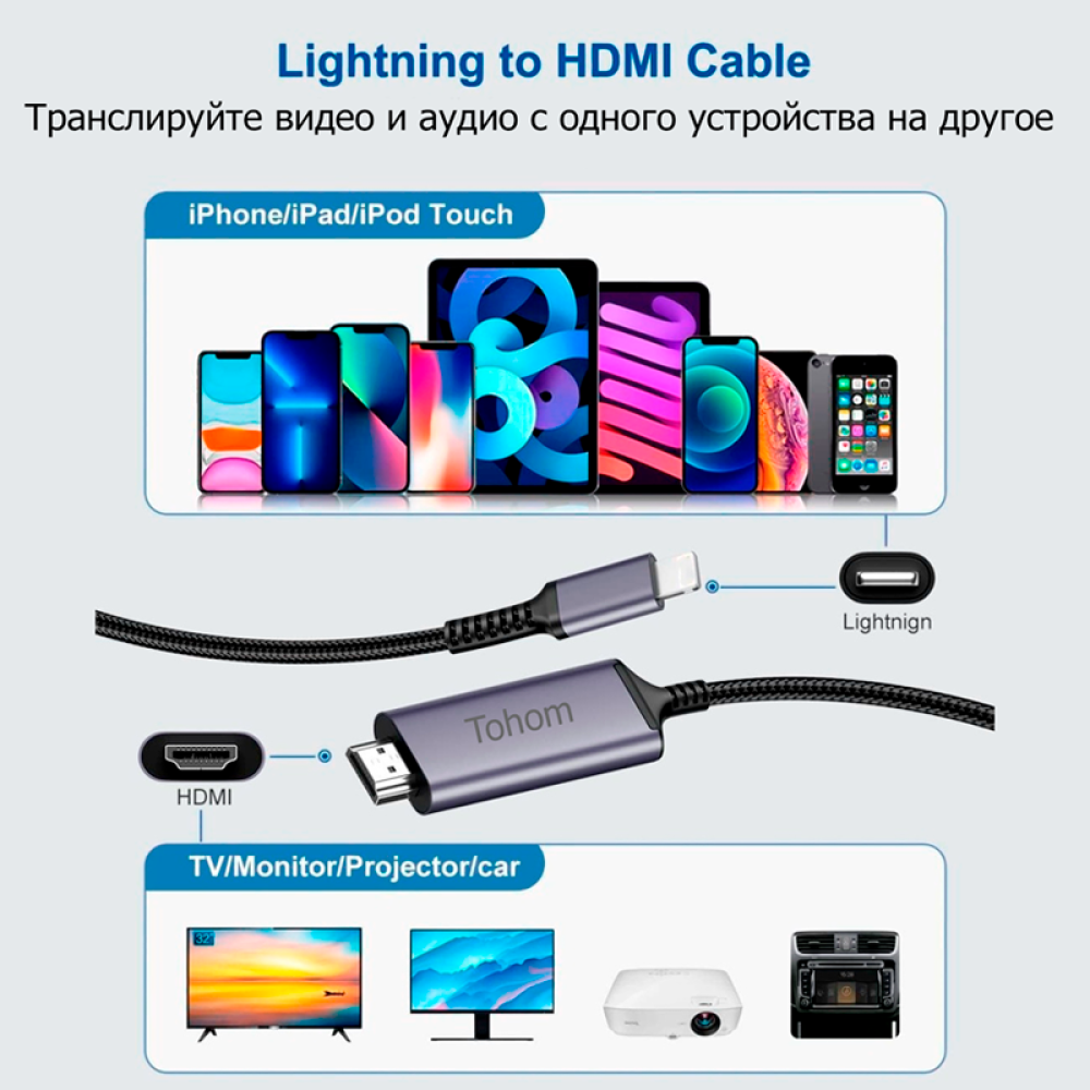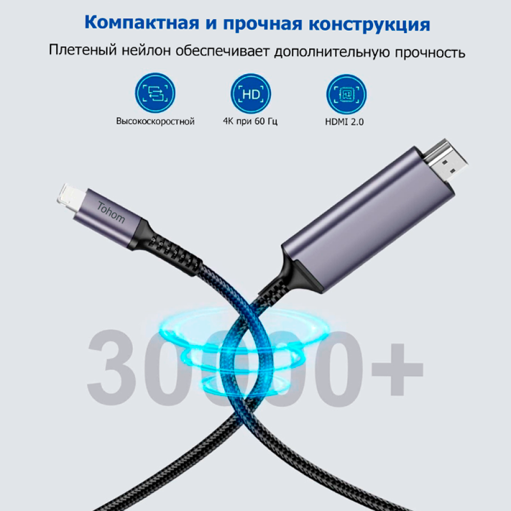 Кабель Tohom HDMI - Lightning 2 м 128991568 – купить в Новосибирске