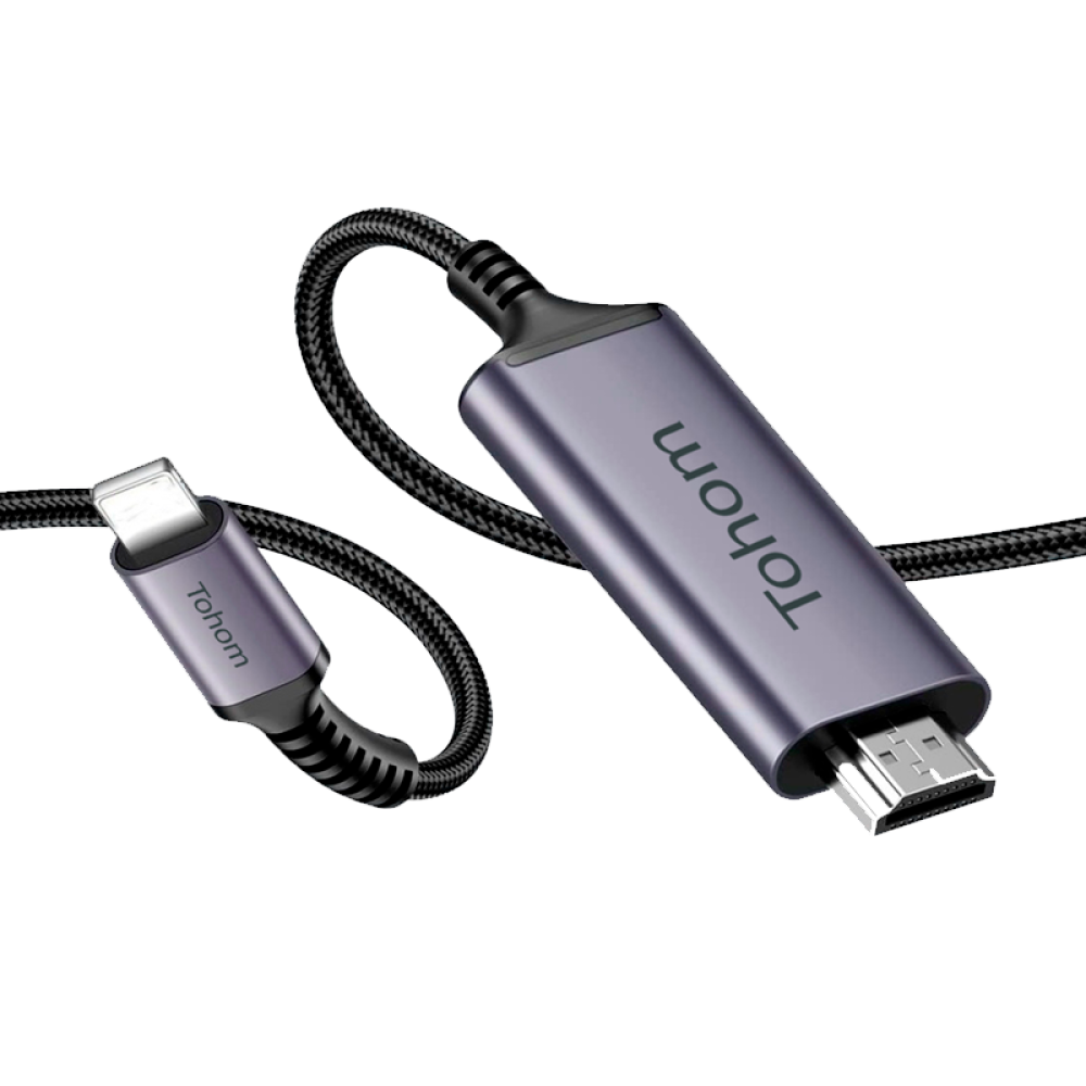 Кабель Tohom HDMI - Lightning 2 м идеально подходит для подключения ваших устройств с разъемом Lightning к телевизору или монитору через HDMI. С длиной 2 метра этот кабель предоставляет достаточную свободу для удобного расположения устройств, обеспечивая высокое качество изображения с поддержкой разрешения до 4K при 60Hz. Яркие и четкие картинки без искажений сделают ваш просмотр еще более увлекательным. Кабель выполнен в стильном сочетании черного и серебристого цветов, что добавляет ему элегантности и делает его отличным дополнением к любому интерьеру.