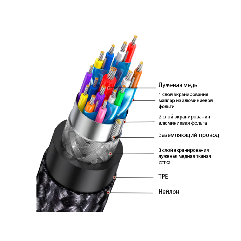 Коннекторы изготовлены из никелированного металла – это улучшает качество передачи сигнала и обеспечивает устойчивость к износу. Штекеры покрыты прочной металлической оболочкой. Кабельная оплетка из нейлона увеличивает срок службы провода, защищая его от перегибов и повреждений. А благодаря улучшенным свойствам теплопередачи, даже при длительной эксплуатации, устройствам не грозит перегрев.