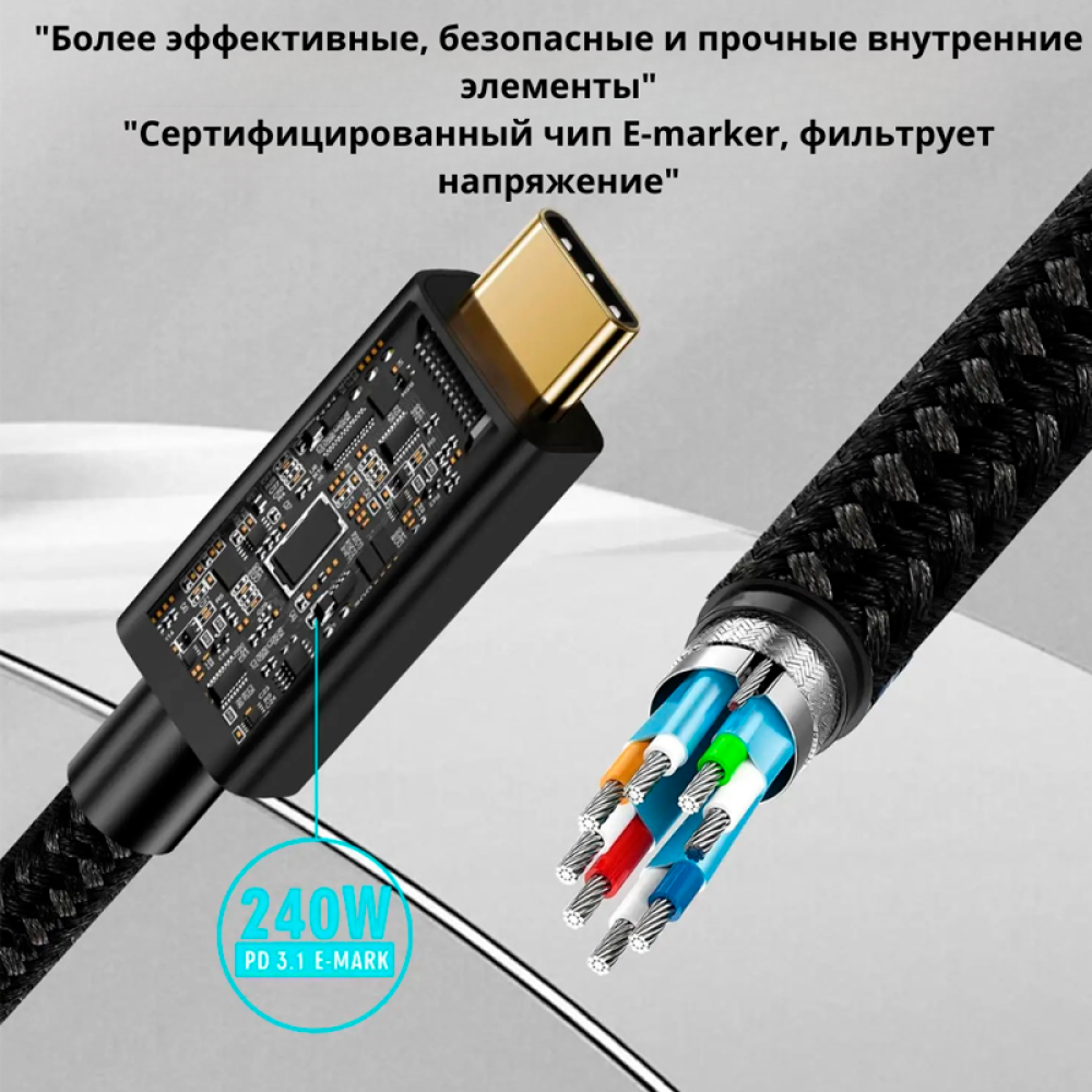 Кабель быстрой зарядки Tohom USB4 Type-C имеет улучшенные характеристики скорости, мощности и совместимости. Он поддерживает универсальный разъем USB Type-C, что позволяет подключать устройства без учета ориентации разъема. Максимальная скорость передачи данных до 80 Гбит/с дает возможность перенести большой объем информации с одного устройства на другое за считанные секунды.