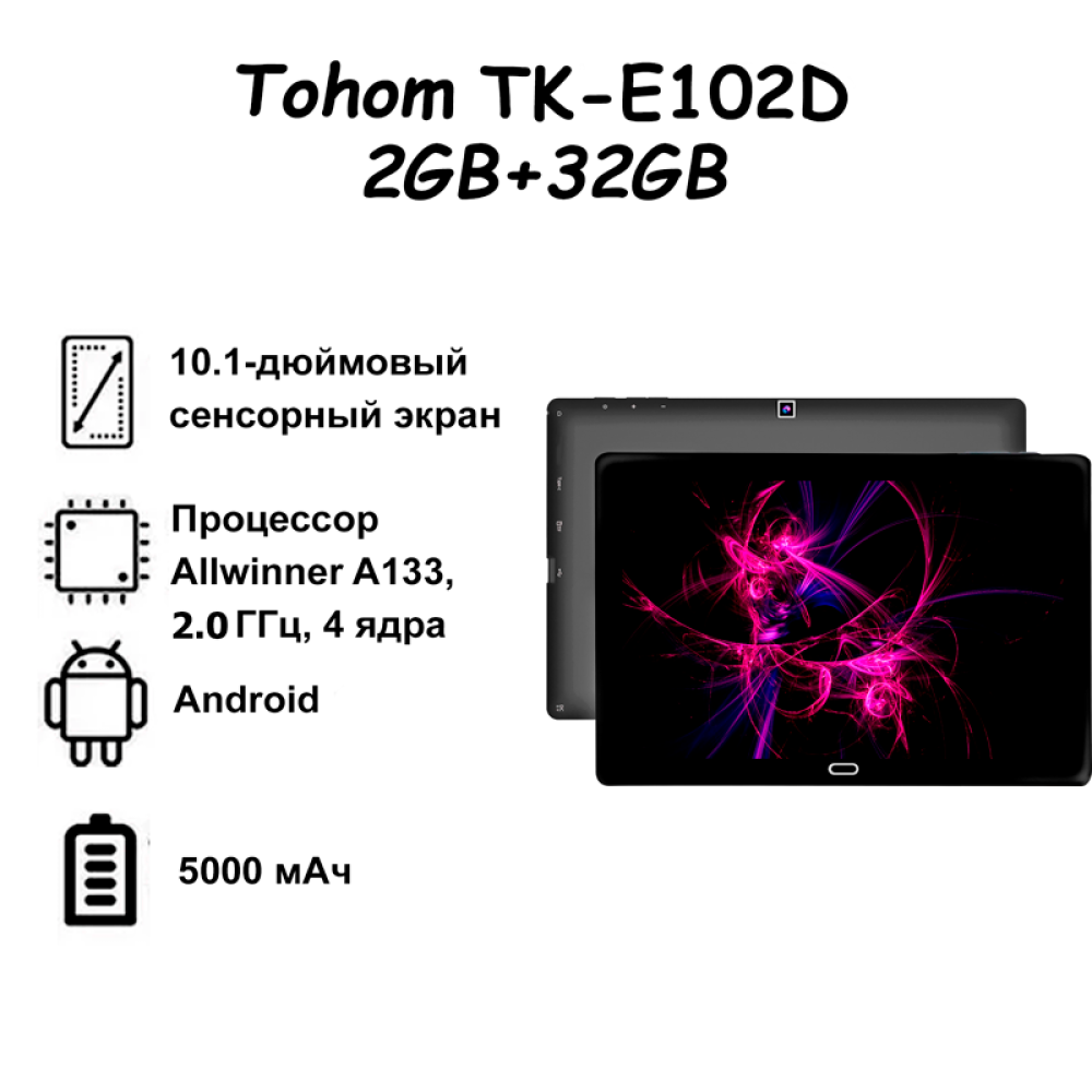 Универсальный планшет Tohom TK-E102D с 10.1-дюймовым IPS-экраном (разрешение 1280×800) создан для комфортного просмотра видео, общения, чтения и онлайн-обучения. Благодаря компактному корпусу (247×165.5×10.5 мм) и оптимальному весу, его удобно держать в руках дома, в дороге или на учёбе.