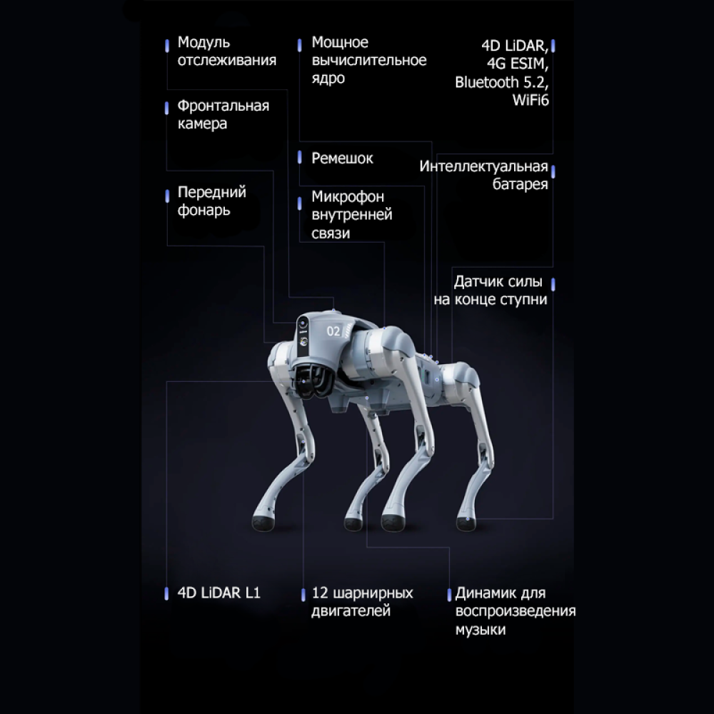 Unitree Go2 Pro с контроллером – компактный робот-собака со встроенным ИИ и сверхшироким 4D-лидаром для улучшенной навигации. Благодаря мощным моторам, робот может развивать скорость до 12.6 км/ч, подниматься по склонам до 40° и перепрыгивать препятствия. При этом Go2 Pro способен нести грузы весом до 8-10 кг, сохраняя стабильность и баланс.