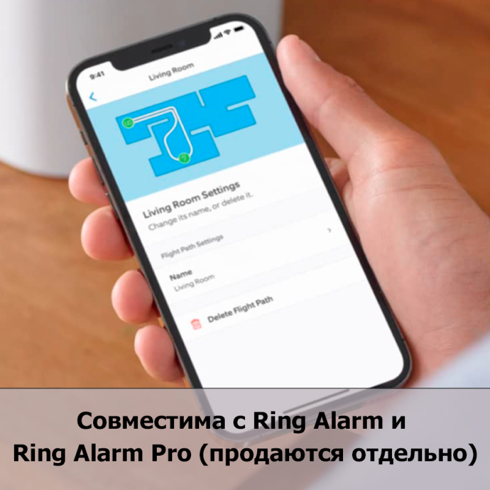 → Камера патрулирует по заданным маршрутам и отправляет видео в ваше приложение. Хотите проверить, закрыто ли окно или выключена ли плита? Просто откройте Ring и проверьте – из любой точки мира.