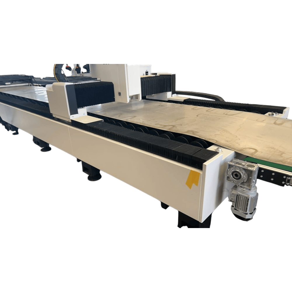 | ФункцииАвтоматическая высокоточная резка металла, волоконно-оптический лазер, система ЧПУ, высокая скорость резки, стабильное качество кромки, минимальные тепловые деформации, автоматическая фокусировка, поддержка различных форматов файлов, точное позиционирование, энергоэффективная работа, непрерывный режим производства, высокая повторяемость реза | Дополнительная информацияПрочная сварная станина с антивибрационной обработкой, закрытая рабочая зона с защитным кожухом, автоматическая система смазки направляющих, интеллектуальная система управления с удобным интерфейсом, высокая точность позиционирования по всем осям, поддержка длительной непрерывной работы, возможность комплектации сменными опциями, соответствие промышленным стандартам качества и безопасности | Размеры8000 × 3000 × 2200 мм |