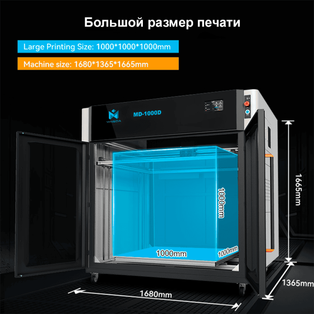 MINGDA MD-1000D — это высокопроизводительный 3D-принтер промышленного класса с увеличенной областью печати, предназначенный для изготовления крупногабаритных деталей, функциональных прототипов и серийных изделий. Модель ориентирована на производство, инженерные центры, архитектурные бюро и образовательные учреждения.