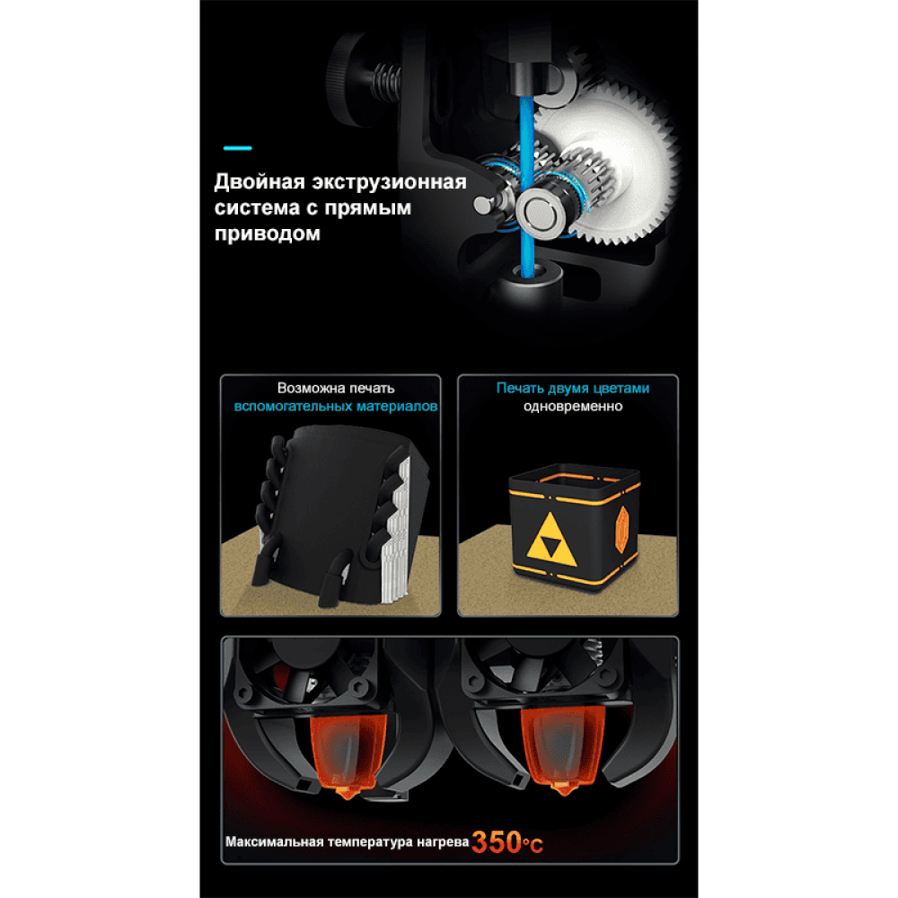 | Материал для печати | Common filament: PLA, TPU, PETG; Engineering filament: PA-CF/GF, PET-CF/GF, HtPA-CF/GF, ABS-GF25, ABS-CF20, PA-GF25/CF25; Support filament: S-Mulit, S-HtPA, PVA, и другие |