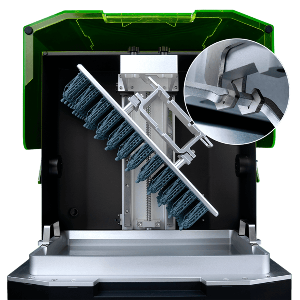 Монокромный 15″ 8K LCD-экран — обеспечивает высокую плотность пикселей (~43 µm XY-разрешение) по всей поверхности печати для тончайших деталей на большом объекте.