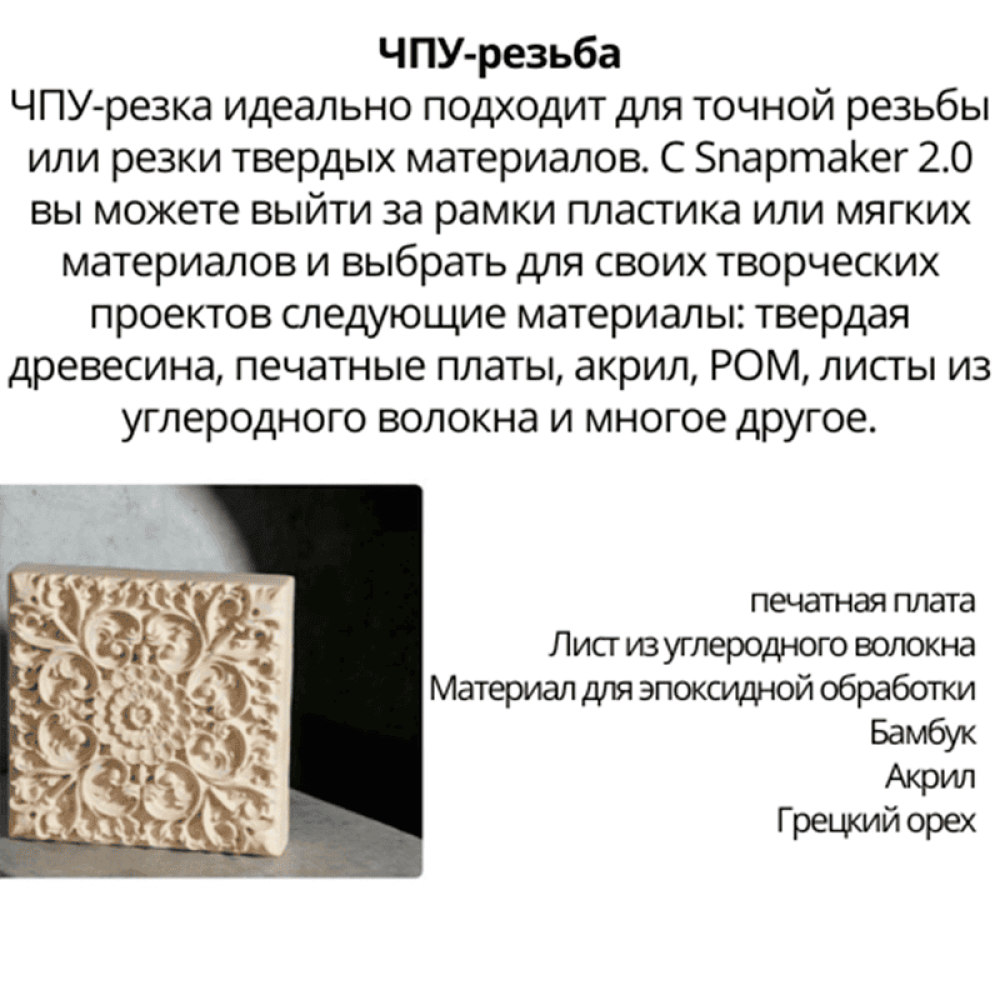 Поддерживаемые материалы: дерево, акрил, PCB, углепластик и др.