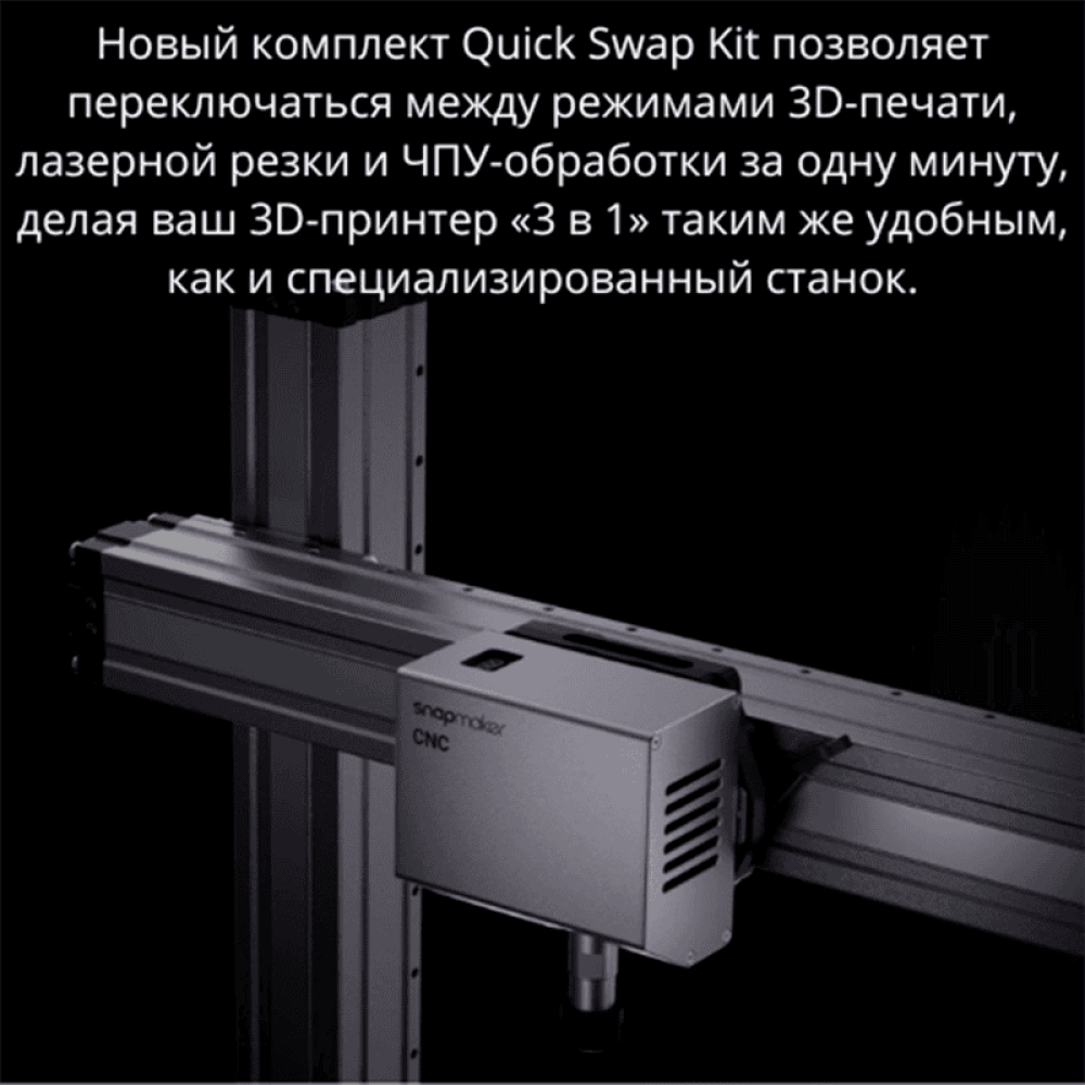 3-в-1: 3D печать, лазерная гравировка/резка и CNC фрезеровка — переключение модулей быстро и удобно.