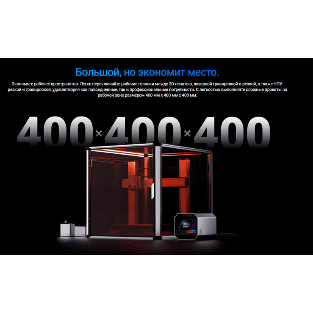 • Большая рабочая зона: до 400×400×400 мм — для крупных проектов или серийных изделий.
