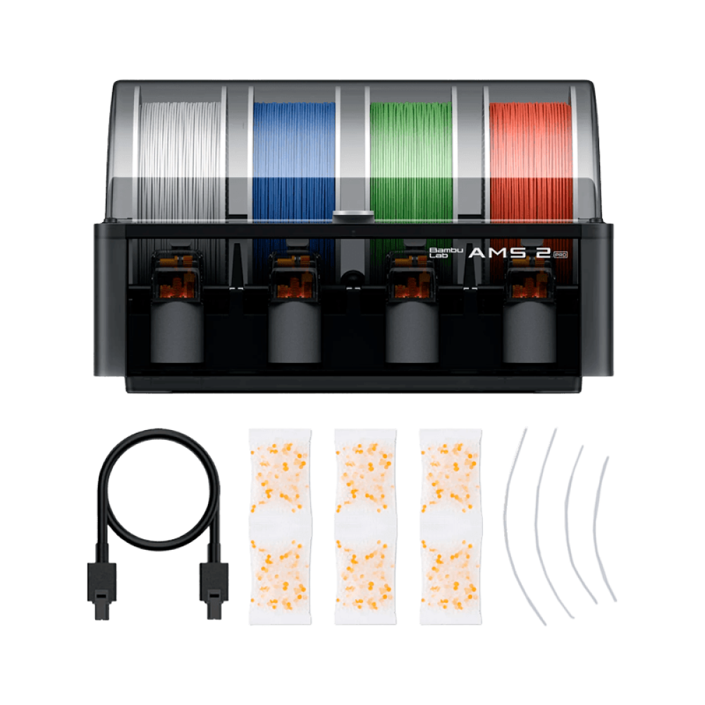 | Комплектация | Bambu Lab AMS 2 Pro, Осушитель, 4 шланга из ПТФЭ, Кабель шины Bambu, 6 контактов |