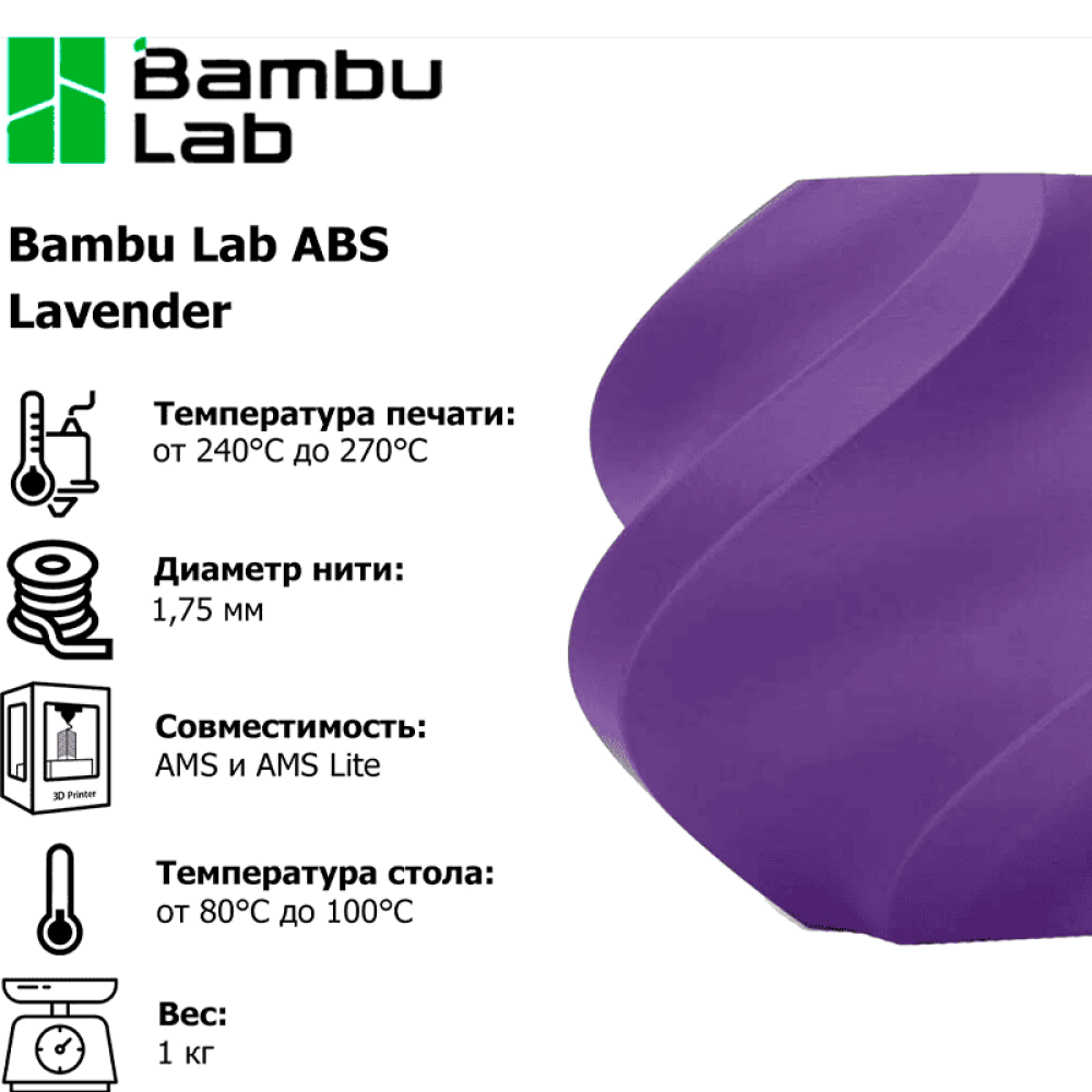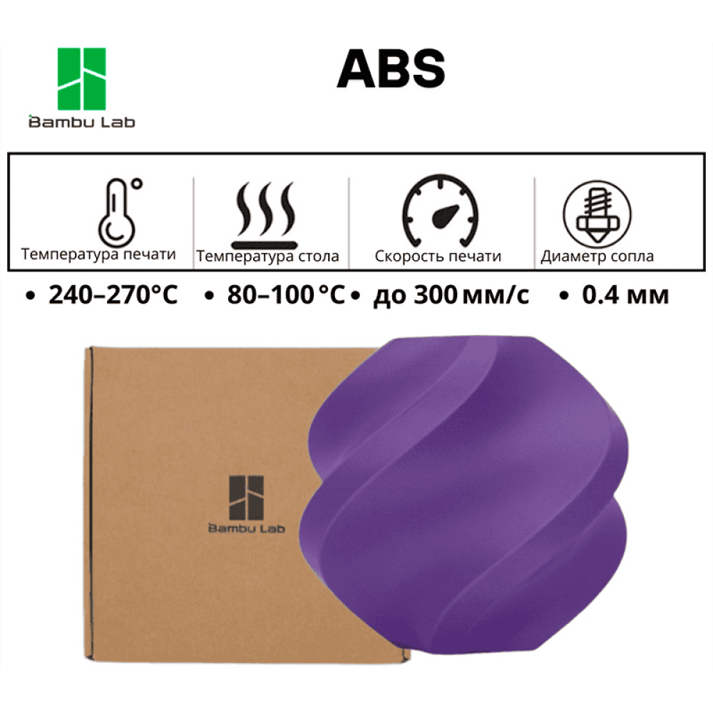 Технические характеристики Пластик Bambu Lab ABS 1.75 мм 1 кг фиолетовый: Ваш выбор для прочной 3D-печати