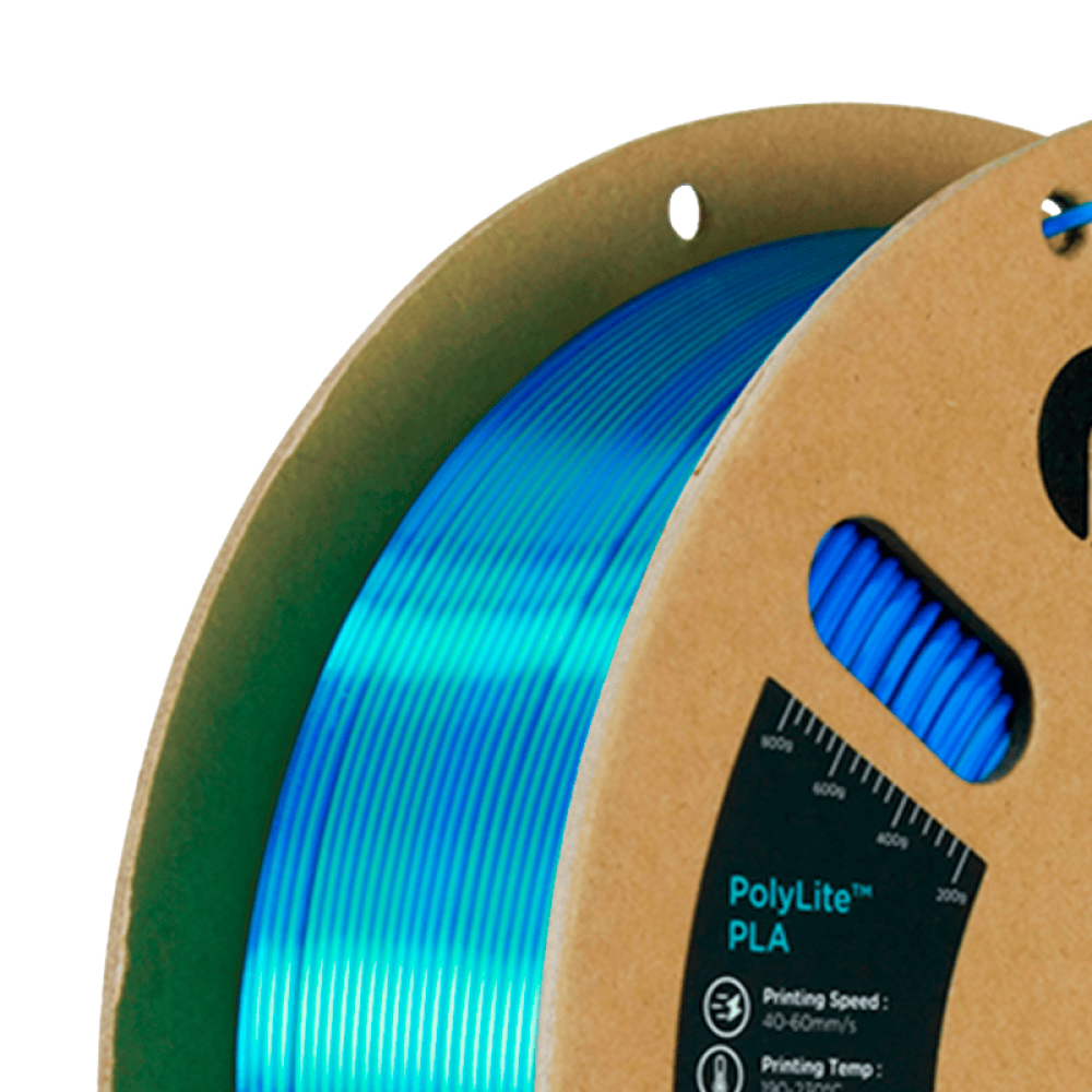 Polymaker PolyLite PLA Dual Silk Сине-зелёный – это 3D-пластик с эффектом двойного шёлка, который придаёт моделям глянцевый переливающийся финиш.