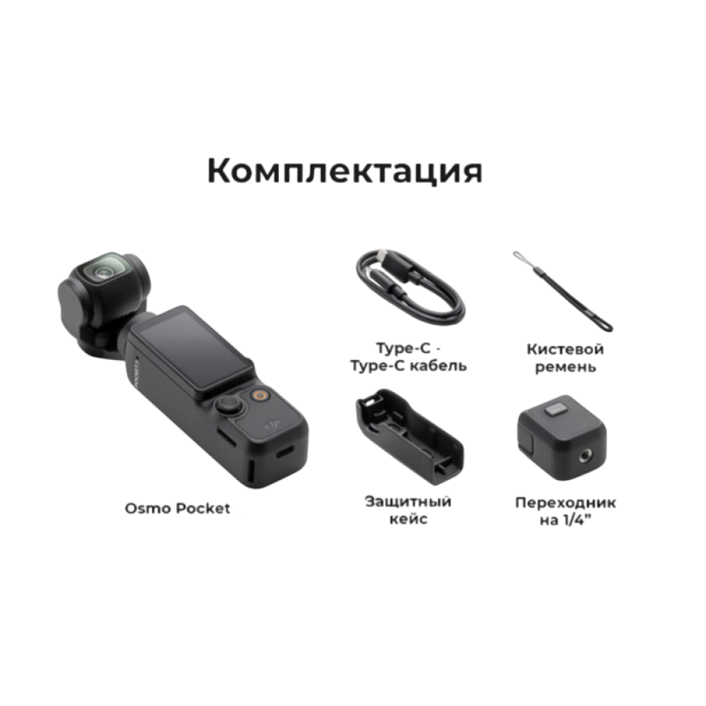 Комплектация | Камера, USB-C кабель, ремешок, держатель с резьбой 1/4" |
