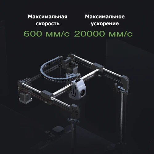 Creality K1 SE предлагает впечатляющие технические параметры. Он способен печатать со скоростью до 600 мм/с и с ускорением до 20 000 мм/с², что значительно сокращает время производства — особенно важно для профессионалов.