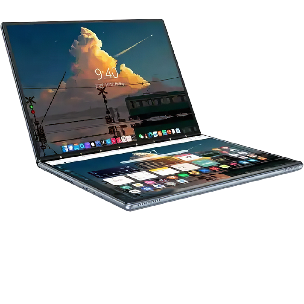 Szbox Tohom DS135D — необычный ноутбук, поскольку он оснащен двумя сенсорными экранами. Размер каждого экрана составляет 14.1 дюймов, что обеспечивает более чем приличную рабочую поверхность. Блокнот также можно открыть как книгу, что позволяет легко просматривать документы.
