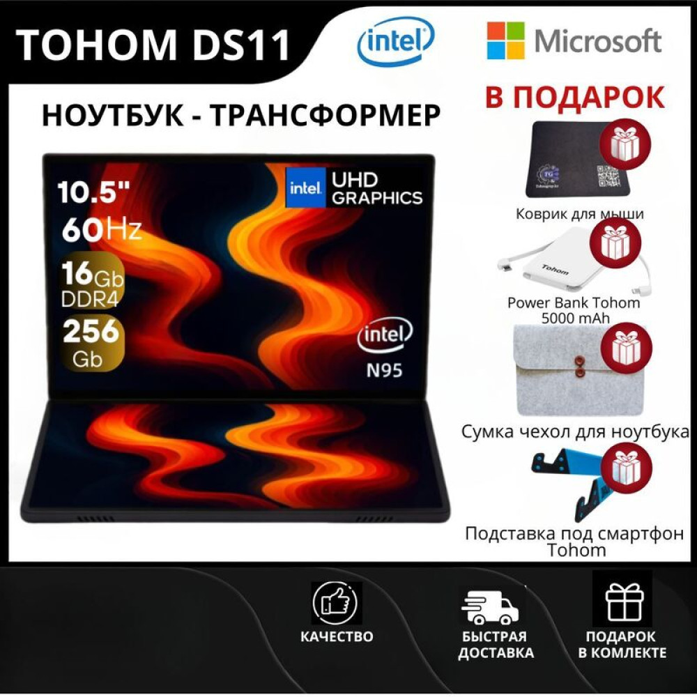 Tohom DS11 — это лёгкий и современный ноутбук с 10.5-дюймовым экраном, который сочетает компактность, мощность и удобство. Он идеально подойдёт для учёбы, работы в дороге, путешествий и повседневных задач.
