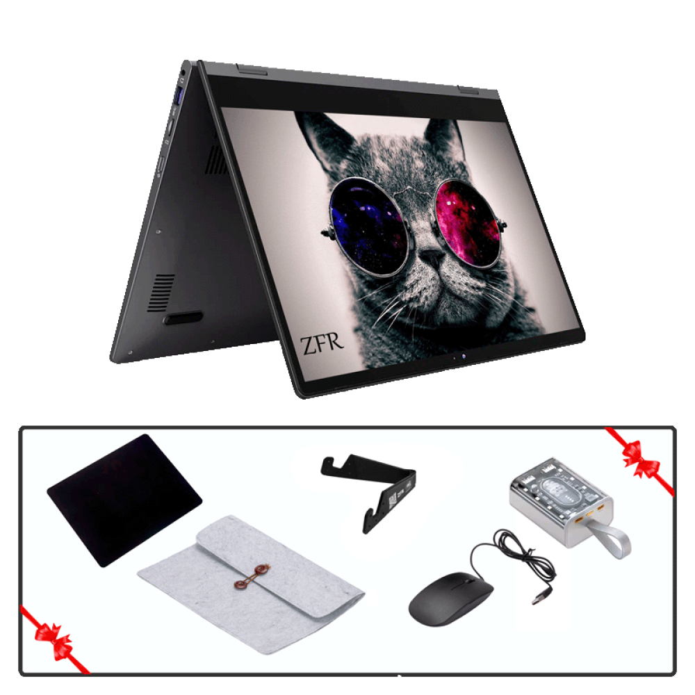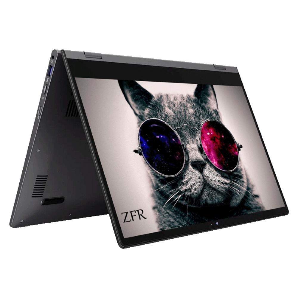 ZFR E140Y — ноутбук-трансформер. Экран можно развернуть на 360° и сложить на клавиатуру дисплеем вверх. Так ноутбук займет меньше места на столе, когда вы не планируете набирать на нем текст.