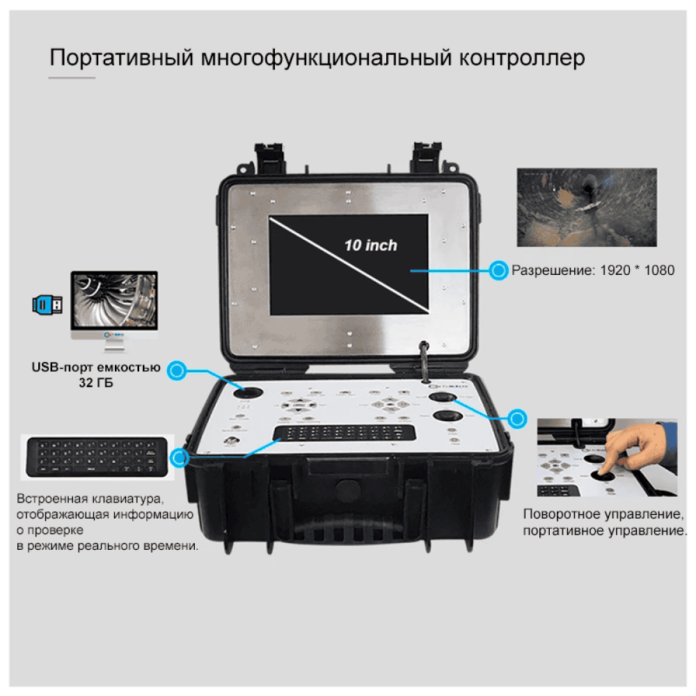 Высокая чёткость изображения: система оснащена камерой с разрешением до Full HD (1080p), что обеспечивает детальную визуализацию внутренних поверхностей трубопроводов.